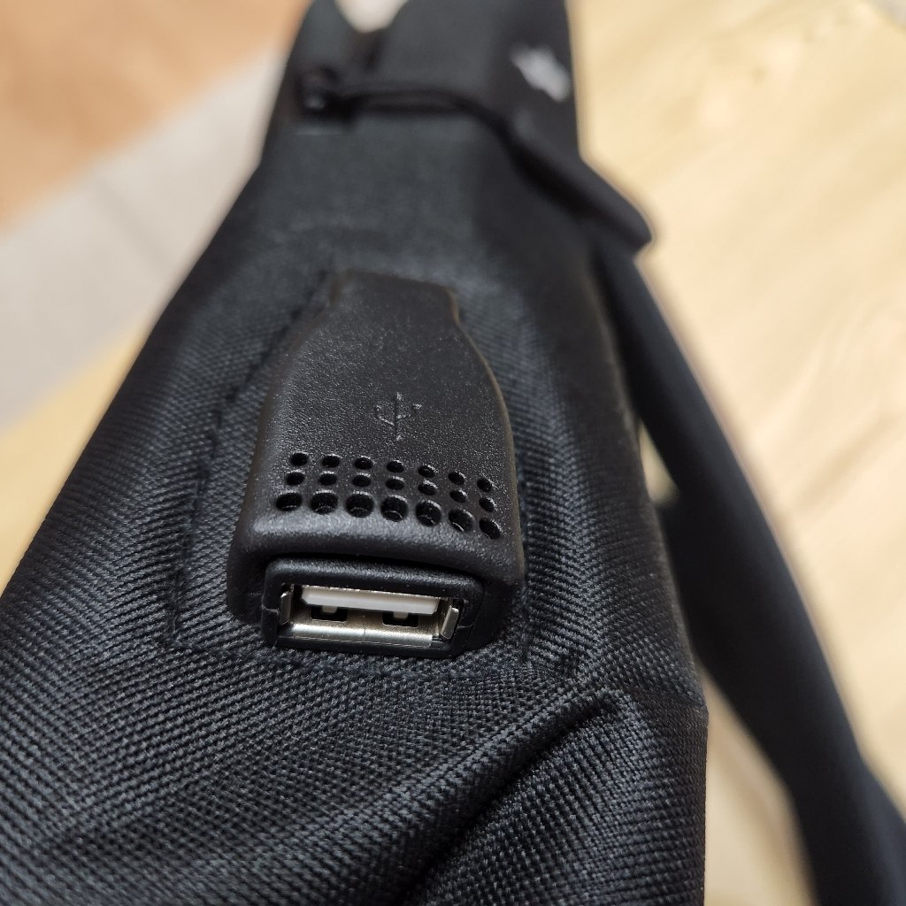 가장 마음에 드는 디자인은 당연히 usb충전 포트다. 나 역시 보조 배터리를 가지고 충전을 하면서 돌아다니는데 주머니 지퍼를 약간 열어둔 상태로 돌아다니긴 불안했다. 하지만 포트를 별도로 설치해둬 이제 보조배터리를 도난당할 일도 없고 깔끔한 연출이 가능해 만족스러웠다.