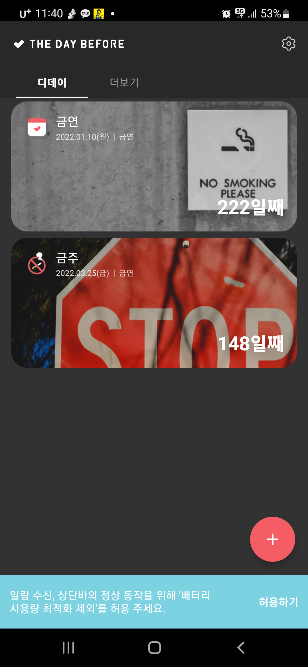 금연 222일이다.
