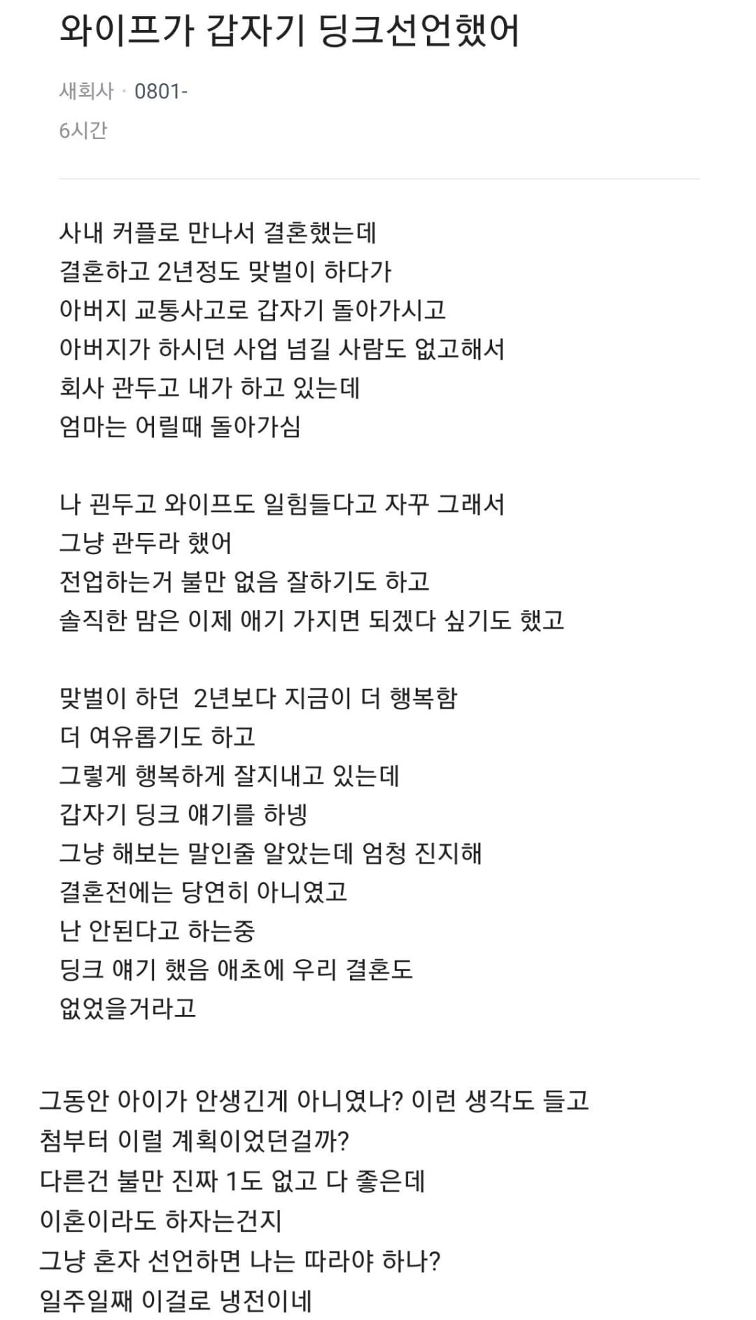 1. 맞벌이 하다 아내가 전업주부 전향