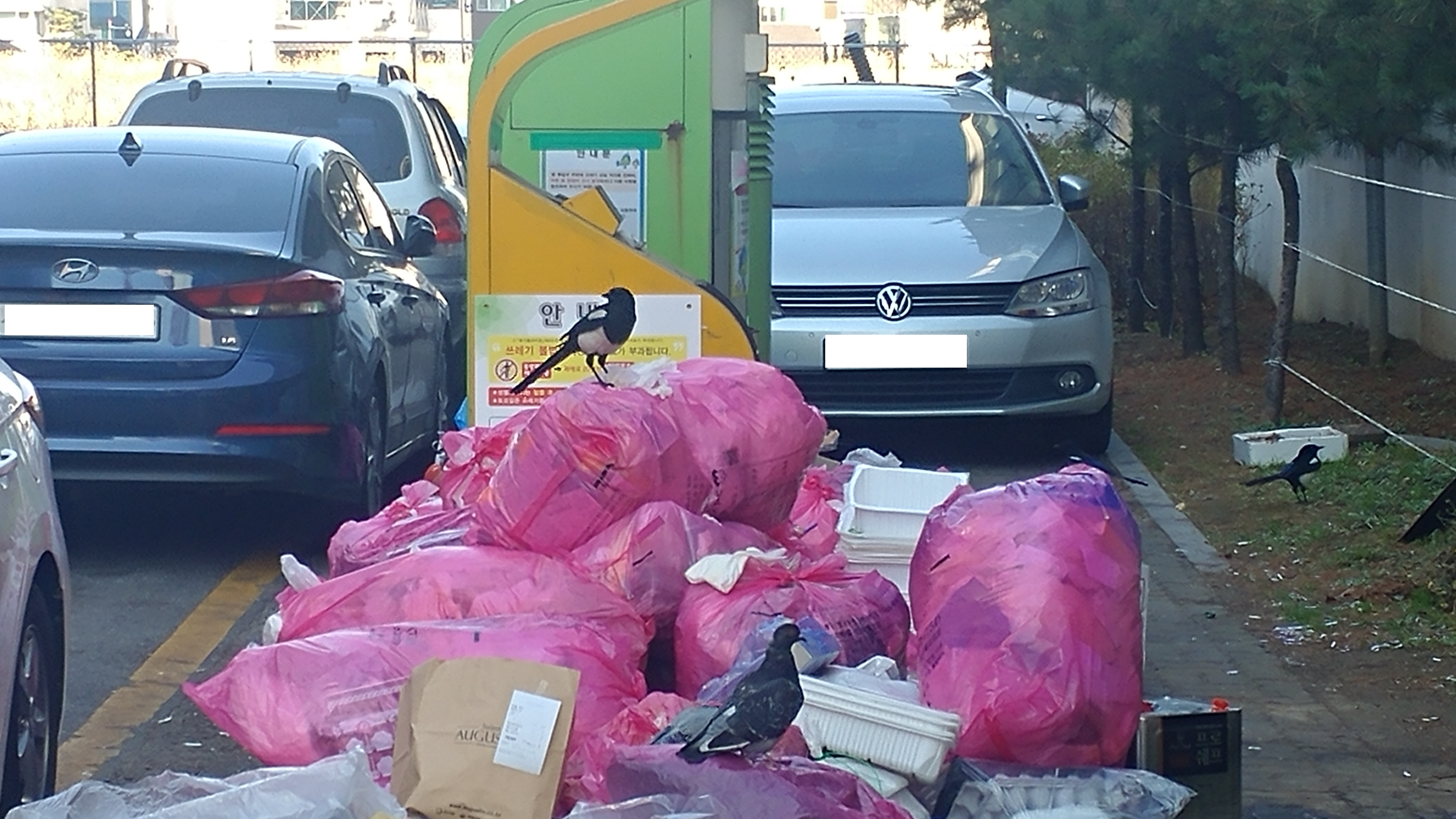 쓰레기를 뒤지는 모습이 포착되어 한 컷!