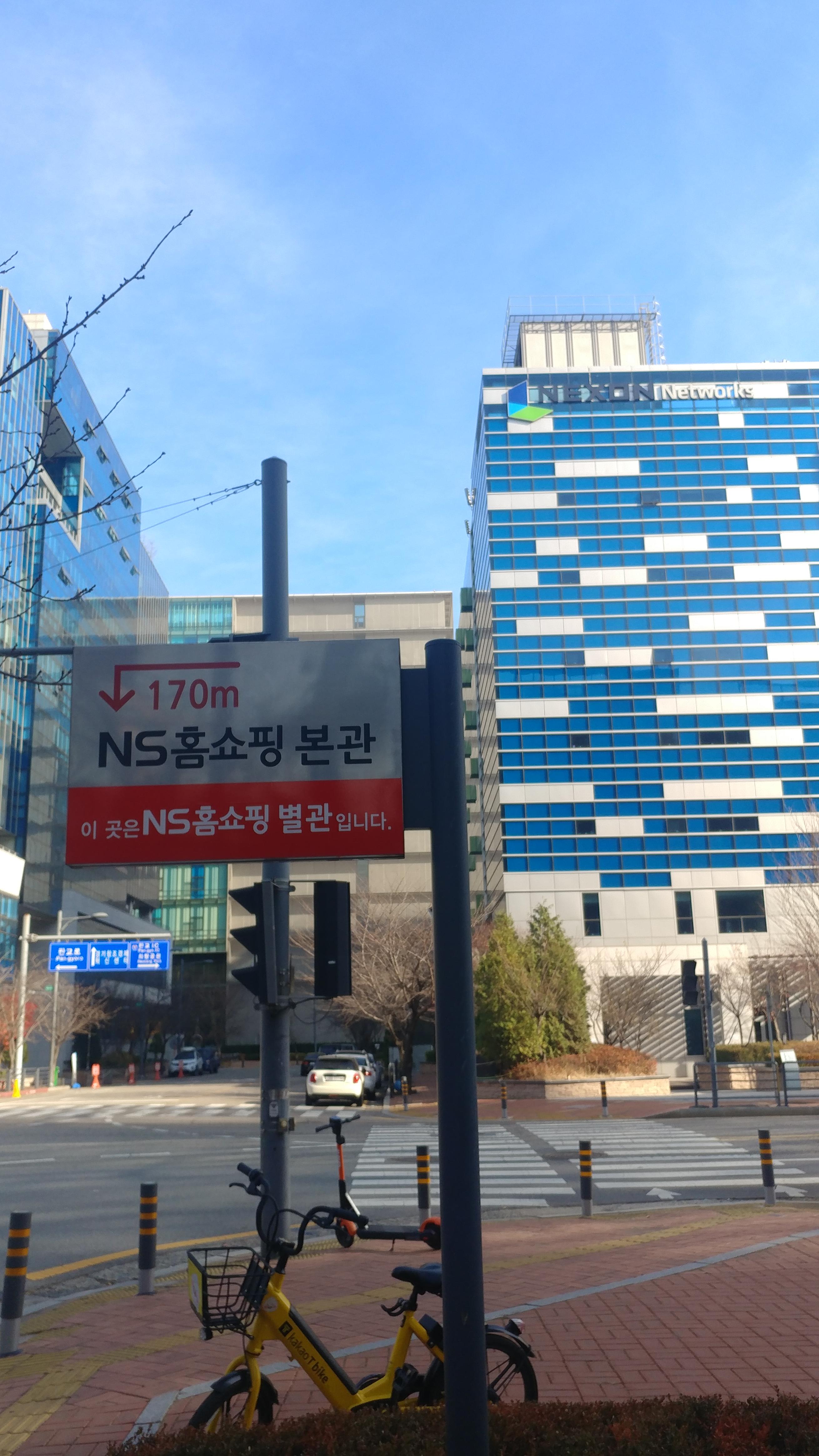 넥슨과 NS홈쇼핑이 있는 건물을 따라