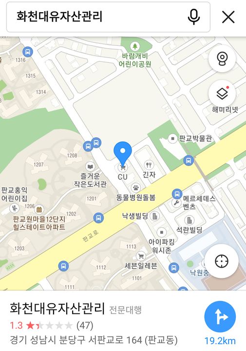 판교박물관 바로 앞에 화천대유가 있습니다.