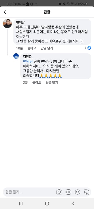 남녀평등-페미-신조어-살기 좋아졌고 여유로워