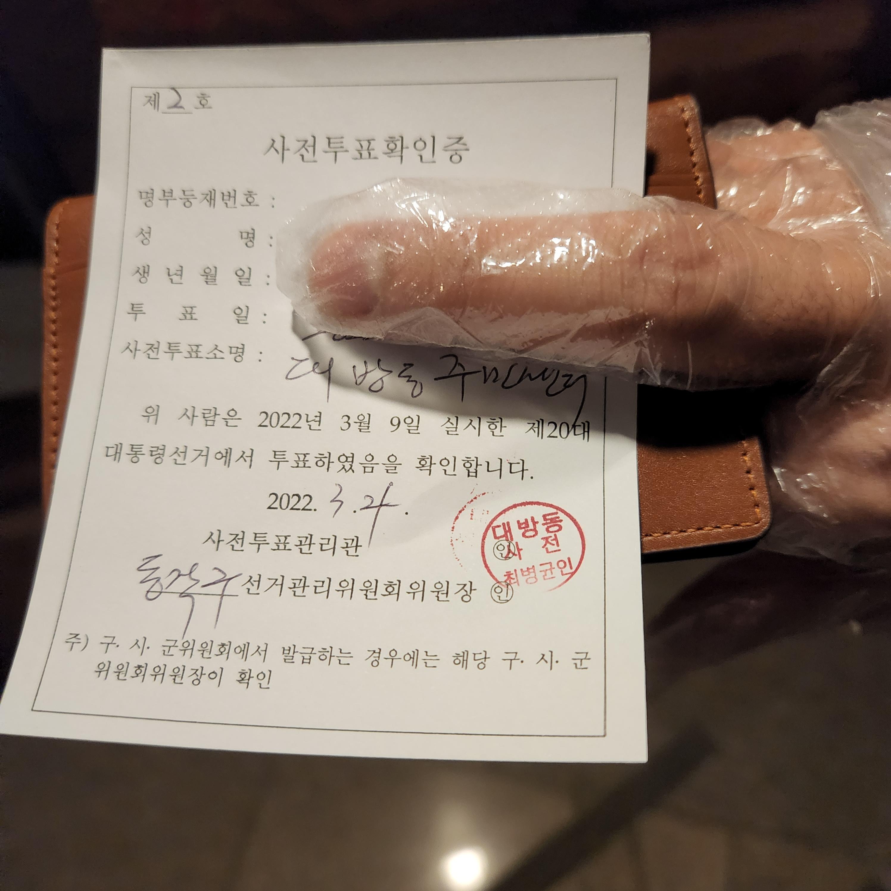 내부까지 찍을 순 없어 투표확인증까지만 첨부함.